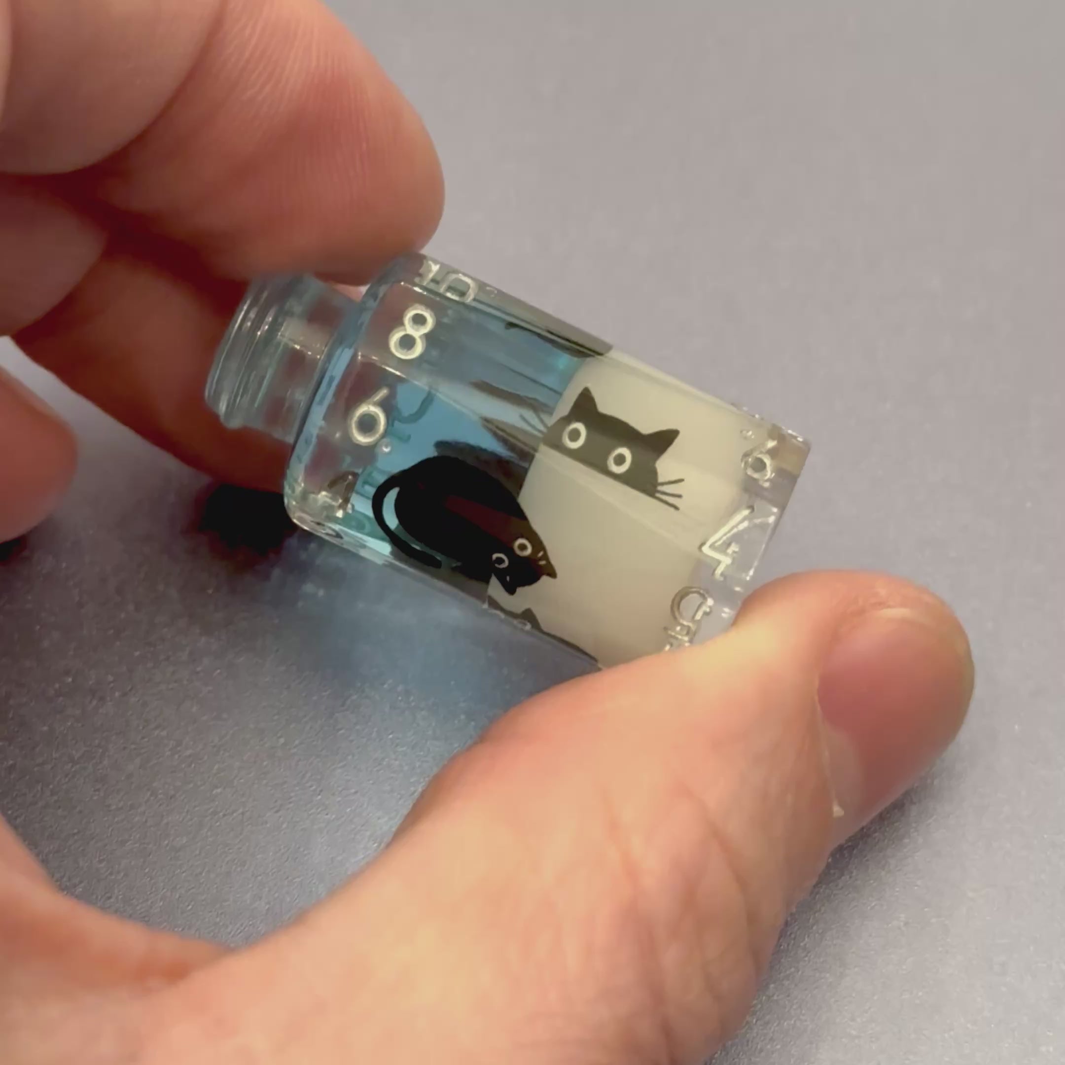 Scellés dans des flacons de potion cristallins, les Chats Envoûtés sont des familiers espiègles flottant à travers des couches de liquide magique. Chaque dé capture un minuscule esprit félin suspendu entre les couleurs, comme figé en plein sort dans l'atelier d'un alchimiste. Lumineux, charmants et pleins de mouvement, ces dés allient un design fantaisiste à une finition polie et haut de gamme – parfaits pour les joueurs qui aiment donner une touche personnelle à leur magie.